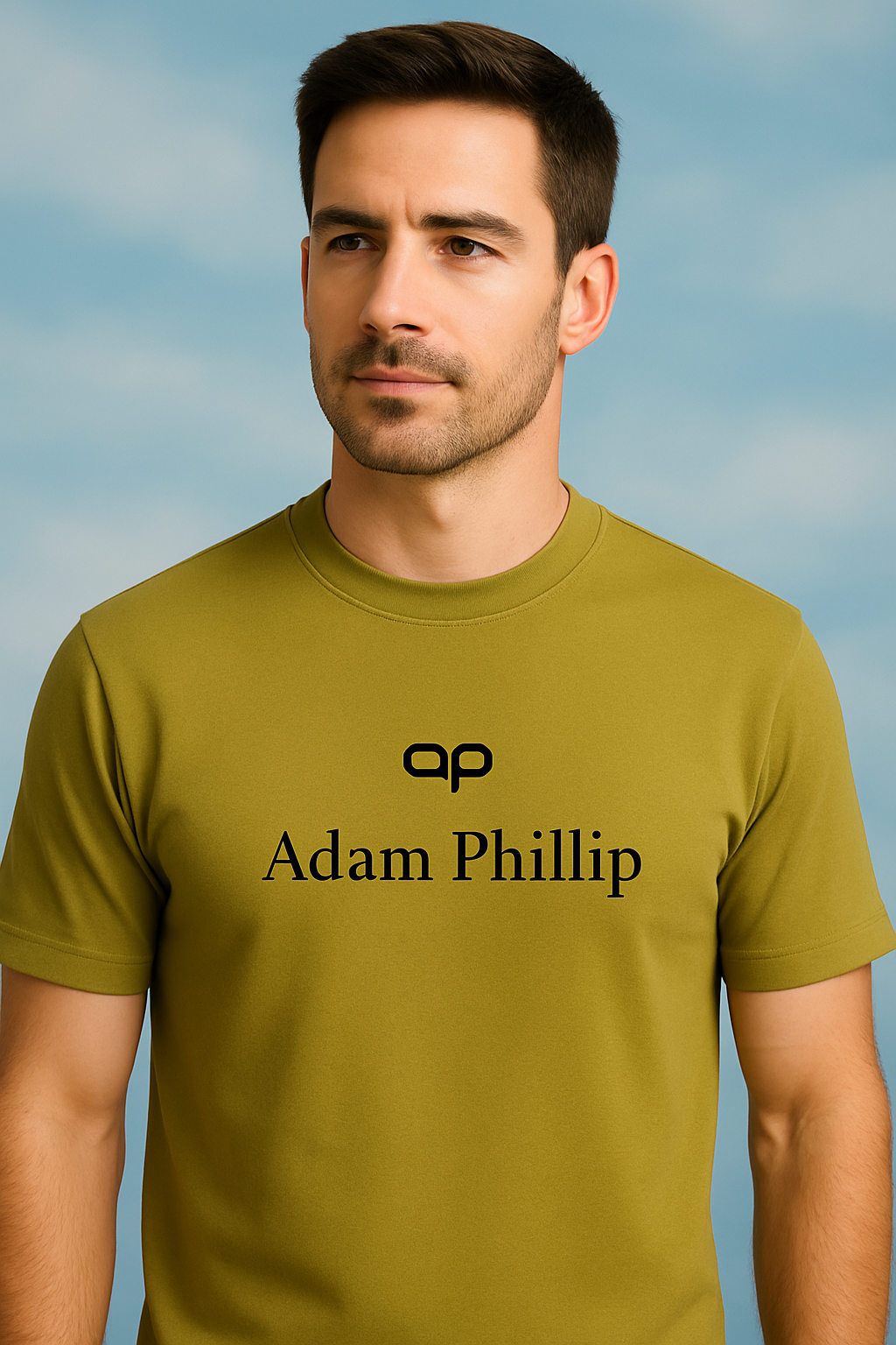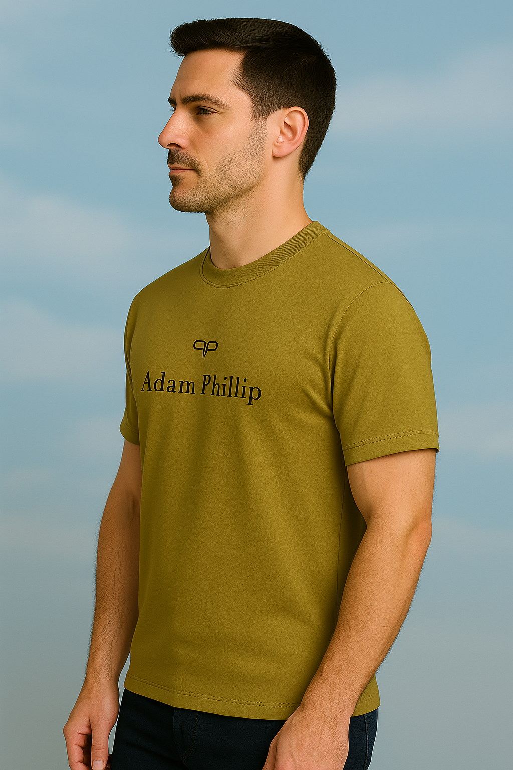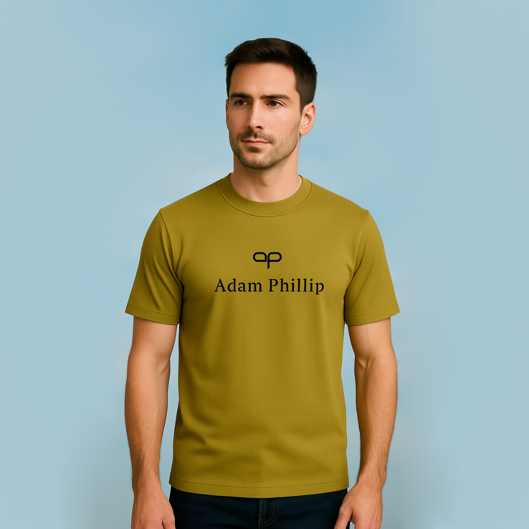 This premium Green T-shirt from Adam Phillip is crafted for those who appreciate elegance in simplicity. The shirt features the iconic “AP” logo prominently placed at the center, with the “Adam Phillip” brand name underneath, both printed in a clean, minimalistic Black font that creates a striking contrast against the Green fabric.